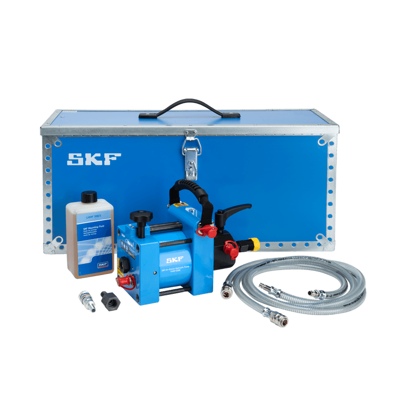 Hersteller-Artikelbeschreibung:Die druckluftbetätigte Hydraulikpumpe THAP 030E kann für den Einbau von SKF OK Drucköl-Wellenkupplungen und ähnliche Anwendungen für Drücke bis 30 MPa/4,350 psi verwendet werden. Die Einheit besteht aus einer Hydraulikpumpe, die von einem Druckluftmotor betätigt wird. Lieferung in einem stabilen Transportkoffer zusammen mit Ölsaug- und Rücklaufschläuchen und Steckverbindern. SKF Ein- und Ausbauflüssigkeiten werden für die Verwendung mit THAP 030E empfohlen.