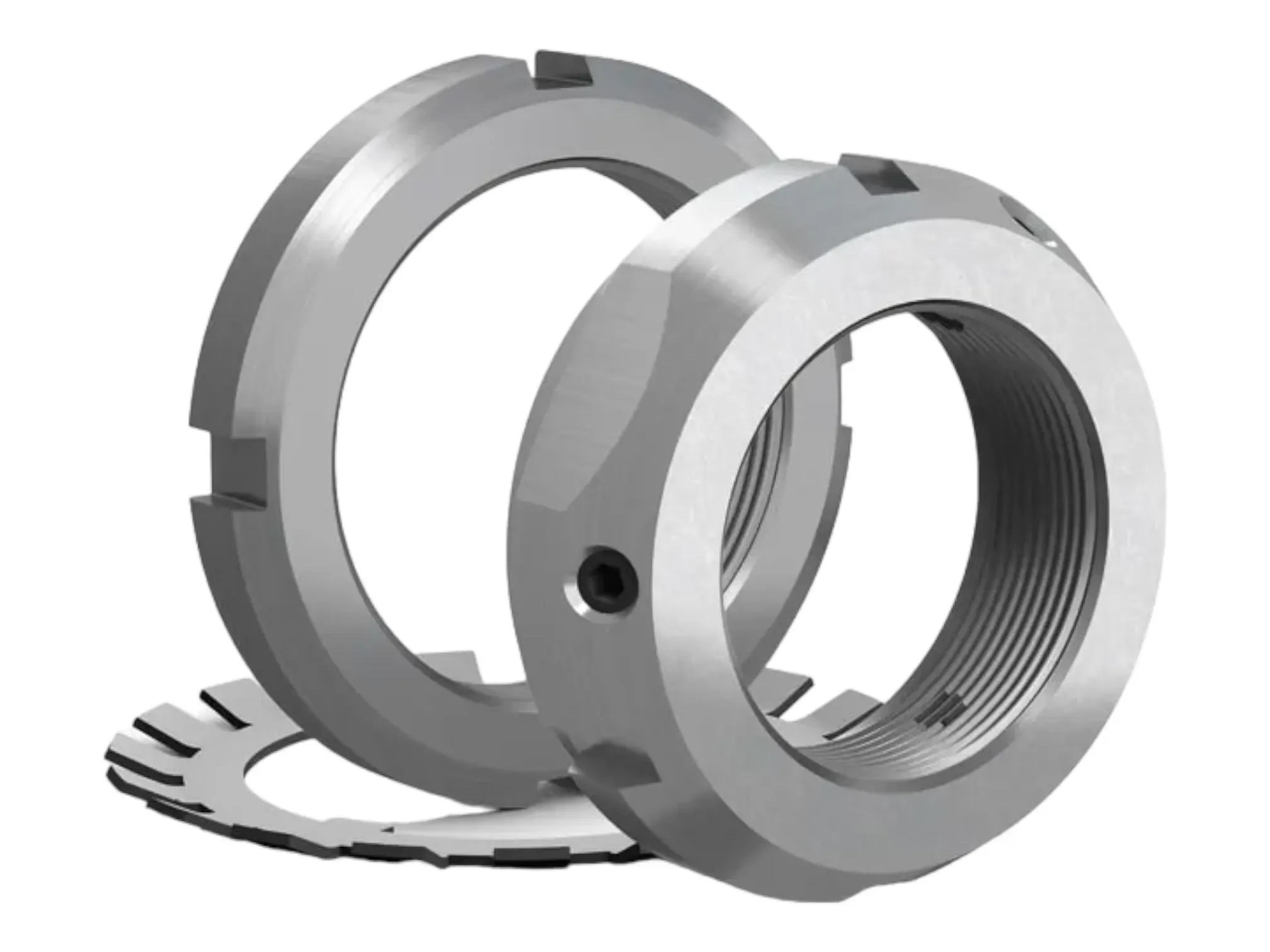 Wellenmuttern nutzen mechanische Prinzipien, um eine sichere Befestigung auf der Welle zu gewährleisten. Durch das Anziehen der Mutter wird Druck auf das Lager oder ein Sicherungselement wie ein Sicherungsblech oder einen Sicherungsbügel ausgeübt. Diese Spannung verhindert das Verschieben oder Lösen der Lager, was besonders wichtig in Anwendungen ist, die hohen Belastungen und Vibrationen ausgesetzt sind.